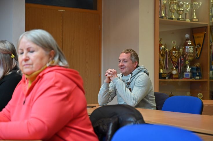 Ředitel David Trunda s úsměvem přijal pochvalu jednoho z fanoušků, že se zlepšuje prezentace klubu v médiích a především na sociálních sítích a stručně se vyjádřil k dotazu na zimní transfery.